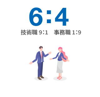 年間休日 男女比率 平均年齢 産休取得実績 育休取得実績 平均残業時間 文理比率 文系の方でも研修で基礎的な教育から学ぶことができます。配属後はプログラミングだけでなく、各分野の業務知識も身に着けて頂きます。 有給消化率 労働者全体の取得率平均 62.1%(厚生労働省 令和5年調査) 内定までの平均日数 書類選考、一次面接、役員面接を行います。 採用情報へもどる